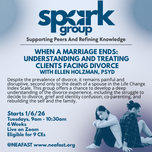 Attendance Policy: All participants seeking continuing education credit must attend the entire program. NEAFAST may, in cases of medical emergencies or other extenuating circumstances, offer partial credit if 80% of the overall credit hours were completed. Please speak to the instructor/facilitator as soon as possible about this if necessary. Those attending as a free member benefit should still plan to attend all meetings to optimize learning and cohesion for all group members.